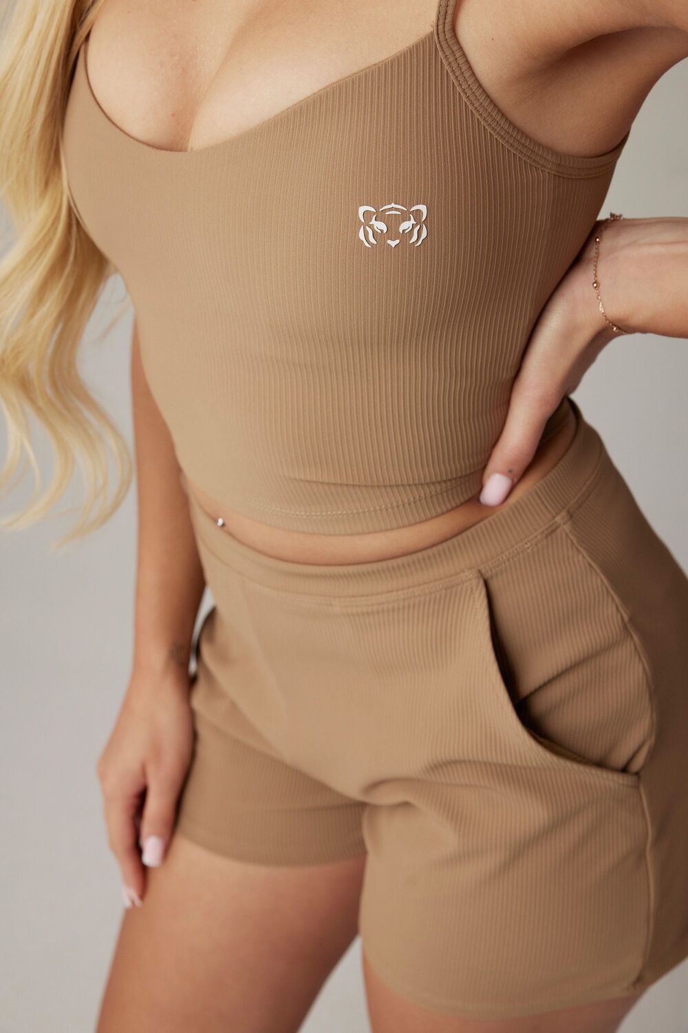 Opis: Prążkowany Top z wkładkami to wyjątkowy element garderoby dla aktywnych kobiet. Wykonany z elastycznego materiału jest idealny do różnych form aktywności fizycznej. Dopasowuje się do kształtu ciała, zapewniając swobodę ruchów. Wybierając Prążkowany Top, zyskujesz produkt, który podkreśli Twoją sylwetkę i doda Ci pewności siebie. Połącz go z szortami lub ze spodniami z naszej strony i stwórz sportowy komplet, który wygląda również elegancko!